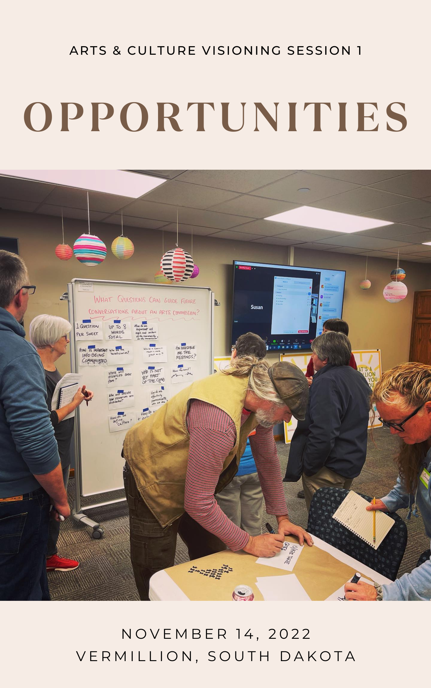 Click on the image to or here to view the full PDF report. This report is a harvest of ideas about opportunities participants saw for collaboration and the possibilities open to Vermillion if we created an arts hub.